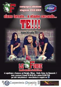 E' partita proprio in questi giorni la campagna adesioni per la stagione 2012/13 alle Furie: "Siamo tornate e... stiamo cercando proprio te!". Uno slogan che fa capire quanta voglia ci sia di emergere e di diventare una grande realtà del football americano 'made in Italy'.
