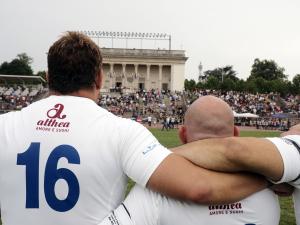 "Le Leggende del Rugby", questo il nome dell'evento, ha diffuso anche un ulteriore messaggio, quello di solidarietà a favore dell'omosessualità proprio nel giorno in cui si svolgeva a Roma il Gay Pride. A sfidare la squadra milanese XV Ambrosiano c'era, infatti, LIBERA RUGBY CLUB la prima squadra di rugby gay friendly in Italia. Per LIBERA si è trattato di un appuntamento ‘storico’ perché per la prima volta si è misurata su un terreno così blasonato, al fianco di campioni internazionali, per portare il proprio messaggio al grande pubblico attraverso lo sport considerato più ‘macho’, ma anche più leale. LIBERA è sostenuta da un'azienda che crede fortemente nel messaggio di solidarietà che la squadra porta con sé, ovvero Althea Sughi che molti ricorderanno per gli spot con tanti tipi di baci, tra cui anche quelli omosessuali.