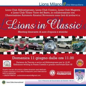 Trecate - Il Lions Club “Ticino Torre del Basto” invita a partecipare a "Lions in Classic”, meeting itinerante di auto d’epoca e storiche che si svolgerà il prossimo 11 giugno con partenza da Trecate e arrivo ad Abbiategrasso. L’itinerario prevede il ritrovo in corso Roma alle 10.30 per proseguire, dalle 11.20, nelle vie più caratteristiche della città: via Macallè, via Ferraris, via Romentino, Padana superiore direzione Novara, via Gramsci, via Matteotti e nuovamente corso Roma per avviarsi quindi verso Abbiategrasso (dove si arriverà intorno alle 12.30) passando per Magenta, Ponte Nuovo, Ponte Vecchio, Carpenzago, Casterno, Cascinazza e attraverso via Novara. Alle 12.45 è prevista in piazza Castello ad Abbiategrasso l’esibizione del gruppo “Twirling Academy” e, a seguire, il pranzo (su prenotazione) al ristorante “Castello”. La manifestazione terminerà interno alle 16, con uscita delle auto in direzione di Magenta.