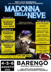 Barengo: Tutto pronto per i festeggiamenti della Madonna della Neve a Barengo a cura della Pro Loco da giovedì 4 a sabato 6 agosto in Piazza Travaglini. Disponibile un tendone coperto, birra e cocktail, aperitivo con dj-set in compagnia di Marafiori e Gallahrdo e tantissime sorprese, oltre che bontà assolutamente da assaggiare. Per ulteriori informazioni chiama dalle ore 18 alle 21 per prenotare il 379 2869147 (anche WhatsApp). Sul palco avremo modo di ascoltare: Echo the Group - 4 agosto; The Washing Machine - 5 agosto; DJ Domenico Marafioti - 6 agosto. Da non perdere!