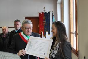 Druogno - “Per la sensibilità con la quale si è avvicinata alla Comunità di Druogno condividendone i "passi" che, nel rispetto della tradizione della nostra terra ci condurranno nel futuro”. E' questa la motivazione riportata sulla pergamena consegnata dal sindaco del comune vigezzino, Giovanni Francini, ad Anna Belfiore il 31 dicembre scorso per il conferimento della cittadinanza onoraria. Un riconoscimento, ha sottolineato Francini, che era stato assegnato solo due volte fino ad ora e che vede la scelta di Anna Belfiore “per essersi prodigata a favore della Comunità Ossolana in veste di Presidente della Fondazione Banca di Intra Onlus e dell'UniversiCà”.