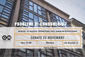 Novara - "Ci incontreremo a Novara sabato 25 novembre alle 17,30 - è l'invito che arriva da GM Studio Tecnico - presso la Sala Comunale del Quartiere Sacro Cuore via Scavini 5. Il nostro studio si occupa di amministrazione condominiale con un approccio centrato sul miglioramento dei rapporti tra e con i condòmini e sul contenimento, in totale trasparenza, delle spese dello stabile. E' davvero possibile avere buoni rapporti, contenere le spese almeno del 20%, gestire meglio e con efficienza le problematiche che emergono nelle nostre case il tutto con massima e costante trasparenza? E' possibile, sì! Come dimostrano i condòmini soddisfatti dei nostri servizi e come vorremmo dimostrarti, assieme ai nostri partner, a Novara, sabato 25 Novembre alle 17,30. Ti aspettiamo! Per saperne di più, discuterne e goderci un rinfresco al temine".