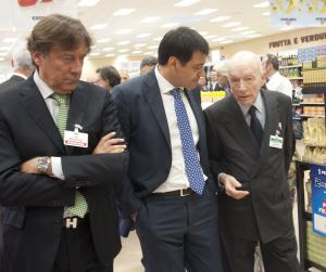 Novara - Il sindaco di Novara Andrea Ballarè con gli assessori al Commercio Sara Paladini e all'Urbanistica Marco Bozzola ha visitato questa mattina, nel giorno dell'apertura il nuovo store Esselunga di Novara. Il sindaco e gli esponenti della Giunta si sono incontrati, all'interno del negozio, con il fondatore della catena di supermercati, Bernardo Caprotti, che li ha accompagnati nella visita. Tra i presenti anche Leonardi, amministratore delegato di Igor.