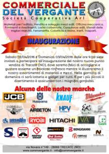 Trecate - Una bella novità nel campo dell'imprenditoria in una realtà e in un tempo dove non è facile 'mettersi in proprio' e rischiare... Apre infatti i battenti sabato 2 e domenica 3 aprile il Commerciale del Vergante. "Siete tutti invitati a partecipare all'inaugurazione del nostro nuovo punto vendita di Trecate - spiegano i gestori della struttura - dove saremo felici di accogliervi e gustare assieme un favoloso rinfresco, mentre vi illustreremo il nostro assortimento di materiali e mezzi. Nella giornata di domenica ci sarà una lotteria e gadget per tutti. E per i più piccoli il divertimento è assicurato con i magnifici gonfiabili. Puoi trovarci in via Novara 149, sulla Sr 11 nei pressi della discoteca Celebrità. Abbiamo un'ampia scelta e disponibilità di materiali per l'edilizia, vendita e noleggio di mezzi edili, officina meccanica, pavimenti e rivestimenti, lastre coibentate, consulenze edili, utensili delle migliori marche, ferramenta, colorificio e serine, oltre ad inerti e trasporti". Alle 9 di sabato 2 aprile ci sarà l'inaugurazione ufficiale alla presenza del sindaco Enrico Ruggerone.