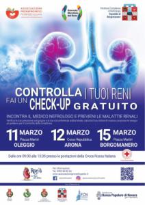 "Il progetto “IL nefrologo sul territorio” si svolgerà direttamente nelle piazze in uno stand della CRI dedicato con il personale Medico ed Infermieristico della Nefrologia - continua il dott. Stefano Cusinato - e consisterà in un check-up gratuito che prevede un colloquio con la persona, la compilazione di una scheda anamnestica, la misurazione della pressione arteriosa, il calcolo del BMI ed un prelievo del sangue, facoltativo, che servirà a controllare la funzionalità renale. Nel pieno rispetto della riservatezza, i dati clinici e laboratoristici raccolti saranno inviati al Medico Curante dell’assistito insieme ad una valutazione del Nefrologo. Anche quest’anno la Struttura Complessa di Nefrologia di Borgomanero e l’Associazione Pronefropatici Fiorenzo Alliata A.P.S., affiancate dalla Fondazione Comunità del Novarese e la dalla Fondazione BPN per il Territorio, hanno voluto condividere e sostenere questa importante iniziativa> - conclude il dott. Stefano Cusinato <con il prezioso supporto della Croce Rossa Italiana di Arona, di Borgomanero e di Oleggio e del Laboratorio analisi dell’Asl Novara. Un particolare ringraziamento al personale della mia Struttura che, con grande impegno e dedizione, collabora nei numerosi progetti realizzati nell’ambito della prevenzione della salute ed al sostegno dei pazienti nefropatici".