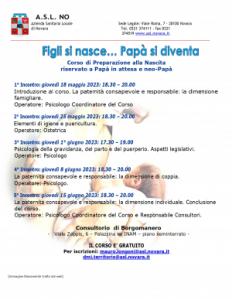 "Il corso dedicato ai papà in attesa o neo-papà, è ormai una realtà consolidata che si affianca ai corsi di accompagnamento alla nascita offerti nei Consultori e con le attività Servizio Psicologia, partendo dalla consapevolezza dell’importanza del ruolo dei padri che va ad integrarsi con quella materna", dichiara Giorgio Pretti, Responsabile Consultori ASL NO.