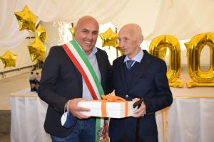 Borgomanero - Familiari, parenti, amici e l’intero abitato di Cascina Fontana (Talunit) hanno festeggiato, domenica 10 ottobre il secolo di vita di Angelo Medina, meglio conosciuto come Lino. Autista di pullman di una nota ditta locale per più di quarant’anni, Lino nato il 5 ottobre 1921, si era sposato nel 1945 in Sardegna a Cagliari con Mercedes Lai (scomparsa nel 1987). L’isola era stata la sua terra di adozione durante il secondo periodo bellico del secolo scorso. Il neo centenario ha ricevuto una targa in dono dai due bambini più giovani della frazione: Mattia Cerutti e Jacopo Oioli. Il Sindaco di Borgomanero Sergio Bossi, nel formulare l’augurio da parte di tutta l’Amministrazione Comunale, ha voluto sottolineare come Lino abbia fornito un servizio, con il suo lavoro, a tutta la Comunità.