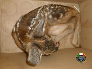 Fara Novarese - Purtroppo succede anche questo, il malcapitato è, un piccolo capriolo maschio di circa una settimana di vita, che recuperato dalla Polizia Provinciale di Novara è stato consegnato alle guardie ecozoofile dell’ANPANA per essere prontamente trasportato al cras Wwf di Vanzago (MI). Il piccolo ungulato, dopo una visita è stata riscontrata la frattura della zampa posteriore destra e tanta fame. Dice Francesco Ragusa, responsabile provinciale delle guardie ecozoofile: “E’ necessario prestare attenzione durante le operazioni e manovre di falciatura dei prati o del fieno nei campi o nelle vicinanze dei boschetti. Per maggior protezione, i cuccioli vengono appositamente lasciati nell’erba alta dalle loro mamme mentre si spostano in cerca di cibo. Al suo ritorno il piccolo viene spinto a seguirla nel bosco”.