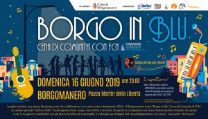 Borgomanero - Lunghe tavolate, una piazza illuminata, note che si diffondono nell’aria e un unico colore dominante: il BLU. A Borgomanero torna per il quarto anno “Borgo in Blu”, Cena di Comunità sotto le stelle promossa da Fondazione Comunità Novarese Onlus in collaborazione con il Comune di Borgomanero e con il sostegno di diversi soggetti del territorio. L’edizione 2019 scommette sulla domenica (nello specifico domenica 16 giugno con inizio alle 20.00) ed è pronta a “vestire nuovamente di blu” Piazza Martiri della Libertà, per questo appuntamento speciale di solidarietà.