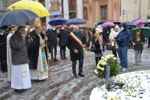 Borgomanero - Tradizionale celebrazione dell'8 dicembre dedicata all'Immacolata. Alla presenza del Vescovo Monsignor Brambilla, il Sindaco Sergio Bossi e la Giunta hanno deposto, dopo la Messa in Collegiata, l'omaggio floreale ai piedi della statua raffigurante l'Immacolata. Un cero, in ricordo di quello posato nel marzo dello scorso anno per scongiurare la pandemia, è stato ubicato ai piedi della Immacolata da quattro persone guarite dal covid. La statua è stata collocata nell'attuale piazza nel 1721.