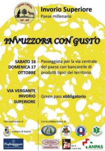 Invorio - Prima edizione per “Invuzzora con gusto” la rassegna turistica ed enogastronomica che il prossimo fine settimana, 16 e 17 ottobre, richiamerà nelle vie del millenario borgo di Invorio Superiore turisti, appassionati e amanti delle cose belle e gustose. Ricco il programma: in entrambe le giornate bancarelle di prodotti tipici nelle vie del paese, per una passeggiata gradevole e coinvolgente. Il sabato dalle 14 alle 21 e la domenica dalle 10 alle 18. Sabato alle 16.30 il Coro Alpino di Maggiora allieterà i presenti con un concerto tratto dal proprio repertorio. Domenica dalle 14.30 castagnata AIB a cura dei volontari squadra AIB- Cerutti Luigi e, dalle 11.45 alle 12.30, ritiro della paniscia, tapulone e polenta d’asporto all’osteria del vergante (prenotarsi entro venerdì 15 al 348. 2924026 e 333.3614374, portare un recipiente proprio). Il ricavato andrà devoluto alle associazioni del territorio: La Madonna del Castello di Invorio Superiore e La Gazza Ladra di Orio. L’iniziativa ha il patrocinio del Comune di Invorio e di Confartigianato Imprese Piemonte Orientale. Con la collaborazione di Associazione Turistica Pro Loco Invorio, AIB Cerutti Lino di Invorio, Associazione professionale cuochi italiani, Gruppo volontari ambulanza del Vergante, Osteria del Vergante, Bar H Invorio superiore e ANPAS associazione nazionale pubbliche assistenze.
