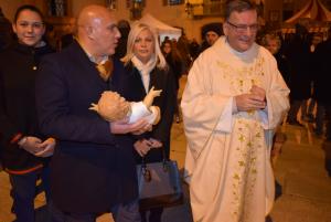 Borgomanero - Come vuole la tradizione, dopo la Messa di mezzanotte del 24 dicembre, il Sindaco di Borgomanero, accompagnato dal Prevosto depone nella mangiatoia del presepe in piazza Martiri il Bambino. Quest'anno accanto al Primo Cittadino Sergio Bossi e al Prevosto don Piero Cerutti, era presente anche Padre Yuriy Ivanyuta della Comunità Ucraina della Diocesi di Novara. Sempre nella cornice di piazza Martiri e nella magia della Notte Santa, la Pro Loco ha allestito il villaggio degli auguri con cioccolata, panettone e vin brulè.