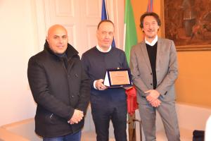 Borgomanero - Con una semplice cerimonia, nella mattinata di mercoledì 21 dicembre a Palazzo Tornielli, il Sindaco Sergio Bossi e l'Assessore alla Cultura Francesco Valsesia hanno consegnato a Giovanni Tinivella, Presidente uscente della Fondazione Marazza, una targa di riconoscimento per l'impegno e la passione dimostrate nel corso del suo incarico (2017 - 2022).