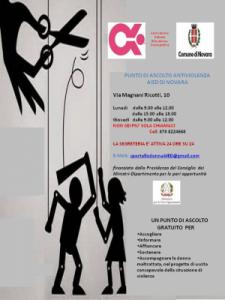 Lo sportello gratuito contro la violenza sulle donne dell’AIED di Novara è aperto tutti i lunedì dalle 9 alle 12 e tutti i giovedì dalle 9 alle 12. Vi è inoltre una segreteria telefonica sul cellulare dedicato, n.3738224668, attiva tutti giorni, h 24, cioè a tutte le ore del giorno e della notte. I messaggi in segreteria verranno ascoltati dagli operatori dell’AIED, che potranno anche richiamare le persone interessate quanto prima. E’ quindi sempre opportuno lasciare nome e cognome. Al numero di cellulare si possono anche inviare sms e messaggi con whatsapp. E’ attiva altresì una mail: sportellodonnaaied@gmail.com.