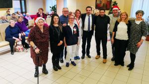 Novara - Un sorriso, qualche gag, musica balli e tanto divertimento... A volte basta poco per festeggiare il Natale. L'associazione Re Biscottino di Novara, guidata dal nuovo Re del Carnevale, Renato Sardo, nelle scorse ore ha fatto visita agli ospiti della RSA I Tigli di Novara su invito delle educatrici della struttura, Fulvia Paglino e Samanta Franchini. "Siamo felici di stare con gli anziani e ci divertiamo davvero tanto - dico il nuovo Re e la Regina, Renato e Giusy Sardo - la nostra associazione è attiva tutto l'anno, non solo a Carnevale. Come sempre portiamo un sorriso e una parola buona a chi è meno fortunato. Sono piccoli gesti che però fanno la differenza". Alla festa ha partecipato anche il sindaco di Novara, Alessandro Canelli. "Vogliamo testimoniare la vicinanza a queste strutture che svolgono un ruolo fondamentale nel nostro tessuto sociale. Siamo vicini agli anziani ma anche ai dipendenti e ai volontari che operano al servizio di queste persone", ha detto il primo cittadino.