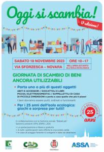 Novara - Nell’ambito della Settimana per la riduzione dei rifiuti, Serr, Assa organizza “Oggi si scambia!”, giornata di “scambio” gratuito di oggetti e indumenti ancora in buono stato e utilizzabili che in questa quinta edizione si arricchisce di alcune significative novità. L’appuntamento è previsto per sabato 18 novembre dalle 10 alle 17 in Via Sforzesca, nell’area adiacente all’Isola Ecologica, e sono invitati a partecipare tutti i cittadini residenti a Novara.