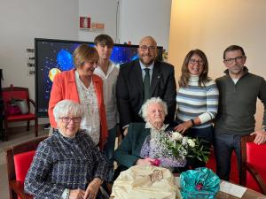 Novara - Mercoledì 15 ottobre sono stati festeggiati alla Pia Casa Divina Provvidenza i 103 anni di Luigia Castelletto vedova Radici, detta nonna Gigia, da sei anni ospite della struttura. La signora Castelletto è seguita dalla figlia Dina classe ‘45, dalle nipoti Raffaella e Daniela e dall’amato pronipote di 14 anni, Andrea. Donna veneta venuta a Novara più di settant’anni fa con il marito e la figlia, è arzilla, simpatica e autosufficiente. Una donna positiva e ottimista, che costantemente regala a tutti il suo sorriso, dicendo che vivere senza sorriso vuol dire perdere del tempo.