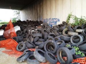 Novara - Negli ultimi giorni, grazie alla partecipazione e alle risorse mese a disposizione da Cim spa (Centro Intermodale Merci, l'interporto tra Novara e Pernate), è stato possibile procedere alla bonifica di una "storica" discarica abusiva di copertoni che da tempo era collocata nella zona dello svincolo autostradale di Novara Est, alle porte della città, proprio nei pressi dell'interporto. Nella foto la situazione com'era prima delle operazioni di pulizia.