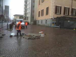 Novara - Prosegue l'attività dei cantieristi, categoria disoccupati, del Comune operativi in Assa. Sotto il coordinamento del personale dell’Azienda, gli addetti al ripristino delle pavimentazioni stradali in acciottolato e porfido hanno provveduto nella mattinata di oggi, martedì 9 gennaio, alla sistemazione del parcheggio di Palazzo Fossati, in corso Cavallotti e in largo San Lorenzo. Sempre operativa anche la squadra addetta alla manutenzione, posa e sostituzione dei cestini stradali che, sempre sotto il coordinamento di Assa, oggi ha svolto l’attività in via Magnani Ricotti e nelle zone limitrofe.