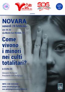 Novara - "Come vivono i minori nei culti totalitari?" Se ne parla venerdì 28 febbraio in un incontro fissato per le 20.30 in via Monte San Michele 19 a cura di Giovanni Ristuccia, presidente di Sos Antiplagio Novara. "Dagli anni 70 in poi - spiega lo stesso Ristuccia - la ricerca della spiritualità ha dato vita a varie formazioni religiose, ognuna con una sua caratteristica e una sua collocazione nel variegato mondo dei culti, dal New Age al Next Age, da quelli occultisti esoterici a quelli del rafforzamento del potenziale umano. Non sempre si tratta di culti limpidi e trasparenti, si possono citare casi suicidi di massa, sfruttamento e riduzione in schiavitù degli adepti. Ed anche quelli meno cruenti, a volte, adottano uno stile di vita molto difficile, chiuso, inadatto agli esseri umani, soprattutto se minori. Della condizione di vita dei bambini e dei minori all’interno di tali culti non si sa molto, ci si affida alle confessioni e alle testimonianze dei fuoriusciti".