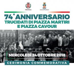 Novara - Sarà celebrato il 24 ottobre il settantaquattresimo anniversario dei trucidati di piazza Martiri (Giovanni Bellandi, Ludovico Bertona e Aldo Fizzotti, insieme con Natale Olivieri, trucidato il 17 ottobre) e piazza Cavour (Vittorio Aina, Mario Campagnoli, Emilio Lavizzari e Giuseppe Piccini). Il programma della cerimonia prevede il ritrovo alle 10.30 in piazza Martiri, con gli onori militari ai caduti e al carabiniere Natale Olivieri, Medaglia d’argento al Valore militare, deposizione delle corone di alloro alla lapide e, quindi, la partenza del corteo verso piazza Cavour, dove, dopo la deposizione della corona d’alloro alla lapide, seguiranno i saluti delle autorità, l’intervento del direttore dell’Istituto storico per la Resistenza e la società contemporanea delle province di Novara e del Verbano-Cusio-Ossola “Piero Fornara” Giovanni Cerutti e la lettura di poesie da parte degli alunni della classe III C della Scuola secondaria di I grado dell’Istituto comprensivo “Margherita Hack”.