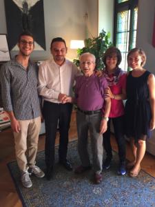 Novara - E’ stato ricevuto questa mattina, lunedì 22 agosto, dal sindaco Alessandro Canelli il signor Pietro Invernizzi, che oggi festeggia il suo centesimo compleanno. Il signor Pietro, con grande spirito ed energia, ha voluto incontrare il Sindaco in municipio, recandosi personalmente accompagnato dalla famiglia. Il Sindaco Canelli si è congratulato per la sua simpatia e, insieme, hanno ricordato i tempi in cui Pietro era titolare di un negozio di alimentari in Porta Mortara.