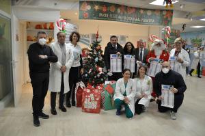 Novara - Sono arrivati alla Pediatria dell’Aou di Novara i regali dell’amministrazione comunale di Novara, che saranno distribuiti dalle associazioni di volontariato Ugi e Abio (attraverso anche le responsabili della Scuola in ospedale). Ad attendere il sindaco Alessandro Canelli (accompagnato dal presidente del Consiglio comunale Dodo Brustia) c’era un favoloso Babbo Natale (Angelo Tredanari) e con lui il direttore generale dell’Aou, il dott. Gianfranco Zulian, la direttrice della Struttura di Pediatria, prof.ssa Ivana Rabbone, il responsabile della Struttura di Chirurgia Pediatrica, dott. Michele Ubertazzi, la presidente Abio Antonella Brianza, il presidente Ugi Andrea Locarni e la dirigente scolastica dell’istituto “Duca d’Aosta” (cui fa riferimento la Scuola in ospedale) Valentina Celotto.