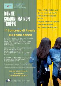 Novara - Ai nastri di partenza un Concorso di Poesia intitolato "Donne comuni ma non troppo", organizzato da Stefania Demicheli con l'associazione teatrale Prove d'Attore. "Il concorso - spiega la stessa Demicheli - ha come tema la donna ed è pensato per mettere in evidenza le problematiche del substrato del mondo femminile in tutte le sue sfaccettature. Il Concorso è rivolto a tutti i poeti emergenti (purché maggiorenni) che desiderano attraverso i loro versi valorizzare la figura femminile. Il Concorso è gratuito; la premiazione avverrà con una serata di Gala in data e luogo da definire". Sono previsti 2 premi: 1° premio Giuria di Qualità composta da scrittori, giornalisti e amministratori locali; 2° premio Giuria Popolare composta dal pubblico presente in sala.