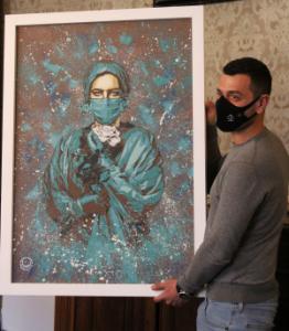 Novara - L’iniziativa è partita dall’associazione “CreAttivi” e dal Comune di Novara: un quadro, realizzato dallo street artist Federico Vullo, per omaggiare gli operatori sanitari dell’Azienda ospedaliero-universitaria di Novara impegnati quotidianamente nella battaglia contro la pandemia Covid. Il quadro è stato consegnato alla direzione generale, che provvederà a collocarlo nella nuova area del Pronto soccorso destinata al percorso Covid, area che sarà inaugurata a breve. «Si tratta di un’opera realizzata attraverso la tecnica dello stancil – ha spiegato Vullo, insieme a Davide Dagosta dei “CreAttivi” – Ritagliati a mano, sovrapposti e poi dipinti su tela con bomboletta spray».