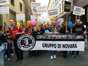 Novara - Sabato 1° aprile i volontari del CCDU Novara si sono recati a Firenze per una manifestazione pacifica contro la violazione dei diritti umani. "Più di 2.000 persone - racconta Lory - provenienti da tutta Italia, Francia, Svizzera, Germania, Paesi Bassi e Danimarca hanno preso parte al corteo di protesta contro le violenze psichiatriche che si è svolto stamattina nel centro di Firenze. Rappresentanti di associazioni italiane ed europee in difesa dei diritti umani hanno manifestato il loro dissenso agli psichiatri che da oggi fino al 4 aprile partecipano al congresso che l'Associazione Psichiatrica Europea ha organizzato a Firenze. Secondo il Comitato dei Cittadini per i Diritti Umani (CCDU), associazione che dal 1979 denuncia gli abusi nel campo della salute mentale e che ha promosso la manifestazione, il congresso finirà per far aumentare l'uso di psicofarmaci e per promuovere quella che sembra essere la nuova frontiera della psichiatria: l'uso di elettrodi impiantati nel cervello, alimentati da una micro batteria posta sotto pelle, collegata con sottilissimi fili che percorrono la nuca. La maggior parte degli psichiatri che compongono il vertice dell'associazione europea di psichiatria, e lo stesso comitato scientifico del congresso, sono noti per i loro legami con l'industria farmaceutica e con produttori di dispositivi per la stimolazione elettrica del cervello, gli stessi che sponsorizzano il congresso. Il corteo è partito da piazza Santa Maria Novella in direzione di Piazza San Marco per poi far ritorno al punto di partenza dove il Dr. Roberto Cestari, presidente del CCDU Italia, ha salutato i manifestanti. Tra coloro che hanno parlato, la prof.ssa Vincenza Palmieri, fondatore del Programma Vivere Senza Psicofarmaci, ha detto che da 30 anni ogni giorno famiglie e bambini finiscono in un sistema che risucchia la loro vita a causa dell'uso di psicofarmaci. Come documentato da innumerevoli studi internazionali pubblicati dalle più importanti autorità nazionali di farmacovigilanza, gli psicofarmaci causano pericolosi effetti collaterali, incluso ideazioni omicide e suicide, psicosi, mania, aggressione, allucinazione, gravi danni epatici, difetti di nascita, diabete, attacco cardiaco, ictus e perfino decesso improvviso. Per l'OSMED (Osservatorio Nazionale sull'Impiego dei Medicinali) il consumo di questi farmaci psicoattivi è in costante aumento in Italia: nel 2015 i farmaci che agiscono sul sistema nervoso centrale erano al quarto posto nella classifica dei farmaci più venduti, con una spesa di oltre 3,3 miliardi di Euro. Tra questi, la parte del leone la fanno gli antidepressivi (più venduti in ambito non ospedaliero) e gli antipsicotici (i più prescritti negli ospedali). A livello europeo preoccupa che il 33% degli adulti di età compresa tra 18 e 29 anni abbia già assunto farmaci psicotropi. (http://www.aifa.gov.it/content/luso-dei-farmaci-italia-rapporto-osmed-2015) Il CCDU e le associazioni a tutela dei diritti umani che hanno manifestato si sono impegnate per la messa al bando dell'elettroshock, trattamento barbaro, ascientifico, con effetti devastanti per la memoria e la salute in generale. Secondo la relazione presentata nel 2013 al Senato dalla Commissione Parlamentare sul Servizio Sanitario Nazionale, l'elettroshock (anche detto Terapia Elettro-Convulsivante – TEC - per dargli una veste più scientifica) viene praticato in 91 strutture ospedaliere e in alcune di esse come trattamento primario, in barba alle stesse direttive del Ministero della Salute che consigliano di usarlo solo dopo appropriati interventi farmacologici. Chi ha subito elettroshock ha raccontato testimonianze dolorose (ricordiamo quella della poetessa Alda Merini) e a coloro che lo promuovevano Franco Basaglia diceva che ha tante probabilità di curare un disturbo mentale quante ne ha una martellata di aggiustare una radio. Alle 17, presso l'Auditorium del Duomo, in via de' Cerretani, 54r, è stata inaugurata la mostra multimediale "Psichiatria: controllo sociale e violazione dei diritti umani". Con i suoi 75 pannelli fotografici e i 14 documentari visionabili su 8 monitor consente al visitatore di ripercorrere 300 anni di storia di trattamenti psichiatrici. Rimarrà a Firenze fino al 10 aprile e potrà essere visitata ogni giorno dalle 9.30 alle 17".