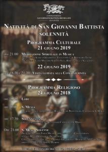 Gli appuntamenti religiosi invece si terranno il 24 giugno: si inizia alle 8.40 con le Lodi, cui seguirà alle 9.00 S. Messa presieduta dal can. Mons. Walter Ruspi, prefetto del Capitolo di S. Maria; nel pomeriggio, alle 17.30, Vespri solenni con la partecipazione del Venerando Capitolo di S. Maria e S. Messa solenne alle 21. La celebrazione, animata dalla Schola Gregoriana "Benedetto XVI" di Novara con il Mestro Simone Pedroni, sarà presieduta da don Paolo Milani, cappellano della Confraternita, nel suo 30esimo di Ordinazione Presbiterale.