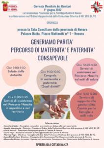 Novara - In occasione della Giornata mondiale dei Genitori, la Commissione provinciale per le Pari opportunità, in collaborazione con l'Ordine della Professione ostetrica di Novara, Vco, Biella e Vercelli, organizza il convegno aperto alla cittadinanza sul tema “Generiamo parità - Percorso di maternità e paternità consapevole". L’iniziativa si terrà dalle 9 alle 12 del 1° giugno nell’aula consiliare di palazzo Natta. Obiettivo del convegno è la focalizzazione del percorso che porta allo sviluppo delle competenze genitoriali già dalla gravidanza sia per la madre, sia per il padre. Si discuterà dei diritti dei quali entrambi i genitori possono fruire prima e dopo la nascita dei figli, dei servizi assistenziali ai quali le coppie dovrebbero avere accesso durante il percorso nascita e dei i servizi disponibili nella nostro territorio a livello ospedaliero e territoriale, fino ai servizi di supporto alla genitorialità offerti dal Centro per le famiglie e dagli asili nido di Novara.