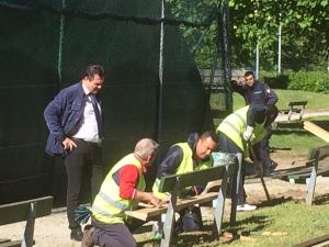 Pernate - Massiccio intervento mercoledì 4 maggio al parco della Mora in Via Cinque Porte a Pernate. I nove detenuti, in uscita in permesso premio dalla Casa Circondariale di Novara, hanno svolto la loro attività volontaria - coordinati da Assa che attraverso il suo personale e i detenuti cantieristi in azienda sulla base della legge regionale 34/2006 ha prestato anche supporto logistico e operativo - sistemando le panchine che avevano molte assi danneggiate, ricollocando i cestini portarifiuti che erano stati divelti, sistemando le altalene che erano diventate pericolose per quanto erano danneggiate e hanno messo in ordine la pista di pattinaggio sulla quale erano state asportate e danneggiate le canaline e le griglie raccolta acqua piovana che sono state ripristinate. L’intervento ha riguardato anche la manutenzione del verde, in particolare sono state chiuse le buche presenti sui vialetti che sono stati mondati dalle erbe infestanti che li invadevano. E’ iniziato anche il ripristino del fondo e della rete del campo da beach che era ormai impraticabile. L’intervento rientrava nell’ambito delle Giornate di recupero del patrimonio ambientale come da protocollo sottoscritto da Comune di Novara, Casa Circondariale, Magistratura di sorveglianza, Uepe, Assa, Atc.
