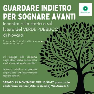 Novara - Sabato 25 novembre alle h. 15:30, nella Sala conferenze Gerico di via Ansaldi 4 (Orto in cucina), si parlerà di alberi e aree verdi in città nell’incontro aperto a tutti “Guardare indietro per sognare avanti. Storia e futuro del verde pubblico di Novara”. Mentre la città si interroga sul suo futuro sotto moltissimi aspetti che vanno da una riprogettazione della mobilità sino al nuovo piano regolatore, Novara Green ha invitato l’architetto paesaggista Francesco Bosco a ripercorrere le tappe fondamentali della nascita e dello sviluppo dell’infrastruttura verde di Novara. L’obiettivo dell’incontro va però molto oltre la condivisione di un resoconto storico: in una città in cui il consumo di suolo continua a crescere, è fondamentale ragionare sul futuro dando il giusto peso e la giusta importanza all’ambiente, anche come strumento per affrontare le conseguenze del cambiamento climatico.