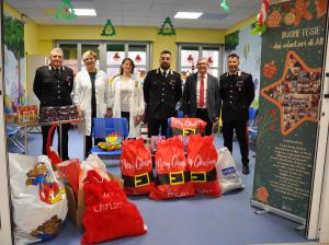 Novara - Come è tradizione ormai da anni, i carabinieri del Comando provinciale di Novara hanno raccolto i fondi per la donazione di regali ai bambini della Pediatria (diretta dalla prof.ssa Ivana Rabbone) dell’Azienda ospedaliero-universitaria di Novara. Guidati dal maresciallo Filippo Furno (comandante della stazione di Cameri) i militari si sono improvvisati tanti… Babbi Natale, letteralmente carichi di tanti sacchi con i doni. La perfetta organizzazione dell’Arma ha fatto sì che ci fossero regali per ogni fascia d’età, dai più piccoli ai più grandicelli. E in più è stata fatta una donazione di cancelleria alla Scuola in ospedale “Marcella Balconi”. Ad accogliere la delegazione dei carabinieri c’era il direttore generale dell’Aou, il dott. Gianfanco Zulian, con la prof.ssa Rabbone.
