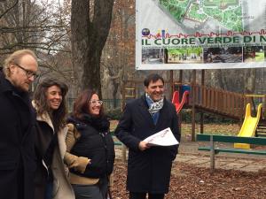 Novara - Nell'ambito della tappa del percorso di condivisione del bilancio di mandato, il sindaco Andrea Ballarè con l'assessore Patti e i progettisti Romina Emili e Matteo Gambaro ha fatto visita al Parco dei Bambini "Marcella Balconi". «Un luogo importantissimo per le famiglie e i bambini - ha detto il sindaco - che vogliamo ristrutturare secondo criteri nuovi, progettati proprio insieme ai più piccoli, atraverso i laboratori che sono stati svolti nelle scuole. Il progetto è all'esame della Fondazione Cariplo, a cui abbiamo chiesto il finanziamento nell'ambito dei Progetti Emblematici. La decisione è ormai imminente e dovrebbe arrivare prima di Natale».