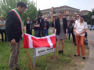 Novara - La mattina di martedì 19 maggio il sindaco Andrea Ballarè, con l'assessore alla toponomastica Margherita Patti, ha intitolato una rotonda nel quartiere di Sant'Agabio (alle spalle del Palaterdoppio, nell'intersezione tra via Edmondo Poletti, via Umberto Barozzi e via Felice Casorati) alla memoria di Attilio Molina. Pittore, nato nel 1916 e scomparso nel 1992, Molina fu uno degli animatori, insieme ad altri artisti come Stefano Gorla, il pittore della "vecchia Novara", del Centro Culturale La Canonica. Alla intitolazione hanno partecipato i familiari, tra cui la moglie, la figlia e la nipote dell'artista. Quest'ultima ha brevemente ricordato la figura di Molina. La rotonda è stata benedetta dal parroco del rione, don Carlo Bonasio.