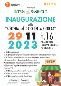 - ore 17 presso la sala polivalente saluti da don Dino Campiotti, Presidente onorario della Cooperativa Gerico; Alessandro Canelli, Sindaco di Novara; Stefano Cappellari, Direttore Regionale Piemonte Nord, Valle d’Aosta e Sardegna Intesa Sanpaolo; Beatrice Tradi, Programme Offi cer Fondazione CESVI