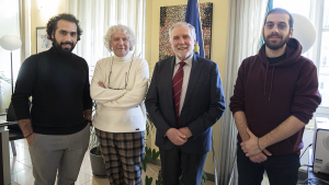 Il Rettore Gian Carlo Avanzi e il Prorettore Roberto Barbato hanno incontrato in Rettorato, a Vercelli, Georges Cheikho e Kinan Nahhass, studenti di nazionalità siriana che da anni vivono la realtà accademica dell’UPO. Insieme a colleghe e colleghi siriani e turchi, sia all’UPO sia in altre università del Nord-Ovest, grazie all’aiuto delle associazioni di volontariato e delle istituzioni locali stanno cercando di mettere in piedi iniziative concrete per sostenere le vittime del terremoto.