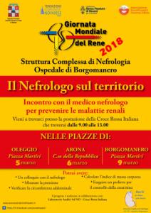 Fai con noi un check-up gratuito per la salute dei tuoi reni é lo slogan della Giornata, che vede presente un presidio della Struttura di Nefrologia in sinergia con la Croce Rossa Italiana, con il supporto operativo dell’Associazione Pronefropatici Fiorenzo Alliata di Borgomanero e la collaborazione del Laboratorio Analisi nelle piazze di: