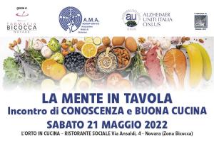 Novara - Sabato 21 maggio presso il Ristorante sociale L'Orto in Cucina in via Ansaldi 4 a Novara (Bicocca), l’associazione A.M.A. (Associazione Malati Alzheimer) Novara ODV terrà un incontro intitolato La Mente in Tavola - Incontro di conoscenza e buona cucina.
