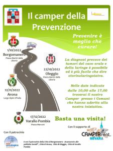 Infine, l’ultima iniziativa organizzata sempre nell’ambito preventivo è il progetto “Il camper della prevenzione”, che promuoverà uno screening itinerante in alcuni Comuni dell’area nord della provincia di Novara per la diagnosi precoce dei tumori del cavo orarle e della laringe.