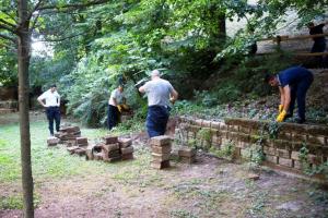 Sono stati rimossi i rifiuti abbandonati nel verde delle aiuole e i bivacchi tra le siepi e gli arbusti, è stata effettuata la mondatura infestanti, sono stati puliti vialetti e rampe, sono stati mondati i polloni dei tigli, è stata fatta la spalcatura dei rami delle piante dei filari, sono state pulite le griglie di raccolta acque piovane ostruite da terra e sassi, è stato ripristinato il muro a secco di contenimento, crollato in più punti in parte per cedimento del terreno e in parte per atti vandalici.