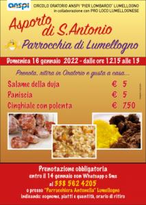 Novara - Il 2022 a Lumellogno inizia con diverse manifestazioni ricreative promosse dall'Oratorio Anspi Pier Lombardo. Domenica 16 gennaio, ecco l'Asporto di Sant'Antonio: dalle ore 12.15 alle 13, si potranno ritirare specialità tipiche novaresi, cucinate dai volontari della Pro Loco Lumellognese, consegnate in contenitori monouso e pronte da gustare poi a casa propria. Il menù prevede la rinomata paniscia (5 €), il cinghiale con polenta (7,50 €) e il salame della duja (5 €). E' richiesta la prenotazione entro il 14 gennaio inviando un messaggio al 338 562 4205 segnalando cognome, quantità e pietanze desiderate e orario di ritiro. Sarà altresì possibile prenotare presso ”Parrucchiera Antonella” a Lumellogno. Il pomeriggio proseguirà poi con la Benedizione degli Animali, davanti al sagrato della Chiesa Parrocchiale. Alle ore 15.30 saranno benedetti i cani e alle 16 i gatti e gli altri animali d'affezione.