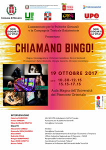 Novara - Si chiama “Non giocarti la vita” il progetto per la prevenzione e il contrasto del gioco d’azzardo promosso dall’assessorato alle Politiche giovanili all’interno in collaborazione con l’assessorato al Commercio. All’interno del progetto rientra lo spettacolo teatrale “Chiamano bingo!” dell’associazione culturale-teatrale “Sudate storie” in programma per la mattinata del 19 ottobre nell’aula magna dell’Università del Piemonte orientale, che patrocina l’evento insieme con l’Ufficio scolastico regionale del Miur. "Da parte dell’Amministrazione – spiega l’assessore alle Politiche giovanili e Commercio Franco Caressa – c’è particolare attenzione rispetto al tema delle ludopatie, fenomeno preoccupantemente diffuso anche tra i giovani. Proprio su questo specifico argomento è stato avviato un tavolo di confronto e di ricerca di modalità operative condivise, per realizzare gli obiettivi comuni con l' associazione di categoria Federconsumatori, l’ambulatorio dell’Asl No Dpd Gap, l'associazione Libera e l’Ufficio scolastico regionale del Miur, all’interno del quale si è deciso di informare nel modo più corretto possibile i giovani e le fasce sociali più deboli sui rischi della ludopatia per aumentare la consapevolezza sui fenomeni di dipendenza, prevenzione e contrasto al gioco d'azzardo. Sono già stati contattati i referenti delle Scuole superiori di secondo gradoper invitarli a far assistere agli alunni alla rappresentazione “Chiamano Bingo!”, che sarà proposta, appunto, alle 10.30 per gli studenti e nel pomeriggio per il pubblico adulto".