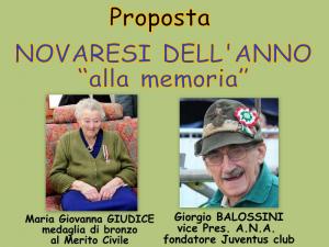 Novara - Lettera aperta di Carlo Migliavacca al sindaco di Novara, Andrea Ballarè, e ai componenti della giuria che stabilisce chi è il Novarese dell'anno. "Nel corrente anno la città di Novara ha perso due grandi figure di cittadini che hanno saputo dare, con il loro esempio, onore e prestigio a tutta la comunità novarese e alla città stessa; mi riferisco alla signora Maria Giovanna Giudice, già staffetta partigiana e medaglia di bronzo al Merito civile attribuita dal Presidente della Repubblica Giorgio Napolitano - deceduta proprio il 25 aprile all'età di 110 anni e 7 mesi, e all'amico di tutti Giorgio Balossini, da poco scomparso, vice Presidente ANA - fondatore e presidente dello Juventus Club cittadino: lo sport, la cultura, la solidarietà, con la promozione di innumerevoli iniziative benefiche, sono gli ambiti in cui ha lasciato un segno indelebile, così come la signora Giudice. Con la presente, desidero sottoporre alla vostra attenzione la proposta di attribuire agli stessi l'Onorificenza di "Novaresi dell'anno alla memoria". Sono certo che l'atto possa essere considerato un doveroso riconoscimento a due persone le quali, seppur in campi diversi e in tempi altrettanto distanti tra di loro, sono stati "modelli di vita civica". Nella certezza che la presente possa essere presa in considerazione e valutata positivamente, ringrazio per l'attenzione e porgo le più vive cordialità".