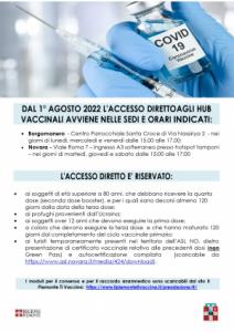Novara - A partire dal 1° agosto 2022 l’accesso diretto ai centri vaccinali avverrà nelle sedi e negli orari indicati: