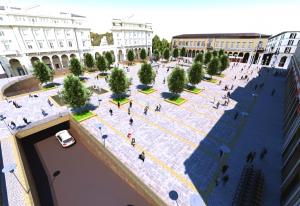 Il Progetto - La proposta ideativa nasce dalla volontà di dare alla piazza una forte riconoscibilità, una funzione cardine e centrale nel tessuto cittadino e, attraverso l'eliminazione del flusso veicolare sulla piazza, di evidenziare e connettere gli spazi pubblici, le architetture ed i monumenti su essa prospicienti.