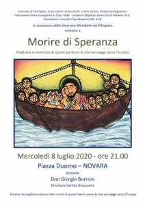 Novara - Preghiera "Morire di Speranza" in memoria di quanti hanno perso la vita nei viaggi verso l’Europa e il Nord del mondo, promossa dalla Comunità di Sant'Egidio insieme ad altre associazioni a Novara mercoledì 8 luglio alle 21 in piazza Duomo. "Durante la preghiera - spiega Paolo Lizzi (Comunità di Sant'Egidio) - che sarà presieduta dal direttore della Caritas diocesana, don Giorgio Borroni, e si terrà con le opportune misure di distanziamento, saranno pronunciati ad alta voce i nomi di tanti bambini, uomini,donne che hanno intrapreso i viaggi della speranza e sono morti in questo ultimo anno. Una sosta di preghiera e di riflessione che da anni, ormai, viene ormai proposta in tante città europee, ma che questa volta, a Novara, si terrà in piazza, proprio nel cuore della città. Desideriamo infatti, con questo gesto, mettere al centro dell’attenzione di tutti, simbolicamente, coloro che la pandemia ha messo in ombra: i migranti e i rifugiati. Gli organi di informazione hanno parlato recentemente di Grace, bimba di pochi mesi scomparsa durante un naufragio al largo delle coste tunisine, e di otto bambini siriani dispersi nel mar Egeo. Non dobbiamo dimenticare che dal 1990 sono morte lungo le frontiere dell'Europa circa 41.000 persone. La Comunità di Sant’Egidio chiede perciò che si continui a salvare, accogliere e integrare chi fugge dalle guerre e dalla miseria, ma anche che vengano attivate e potenziate dai governi nazionali e dall’Unione Europea vie d’accesso legali e sicure, come quelle dei “corridoi umanitari”"