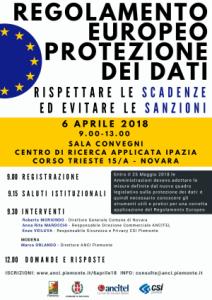 Novara - Si parlerà del nuovo Regolamento Europeo sulla Protezione dei Dati (GDPR), nell'incontro che si terrà il prossimo 6 aprile a Novara, nella sala convegni del centro di ricerca applicata Ipazia, in Corso Trieste 15/A. L'evento, organizzato da ANCI Piemonte con il patrocinio del Comune di Novara, dell'Ancitel e del CSI (Consorzio Servizi Informativi) Piemonte, analizza la normativa europea a meno di due mesi dalla sua entrata in vigore. Il nuovo Regolamento sulla Privacy, in vigore dal prossimo 28 maggio, è il risultato di un importante processo di riforma internazionale e introduce regole universali sul trattamento dei dati, con conseguenze di notevole impatto culturale e organizzativo per gli Enti locali. Tra le principali novità, è previsto l'obbligo di individuare la figura del Responsabile della Sicurezza dei Dati o DPO (Data Protection Officer).